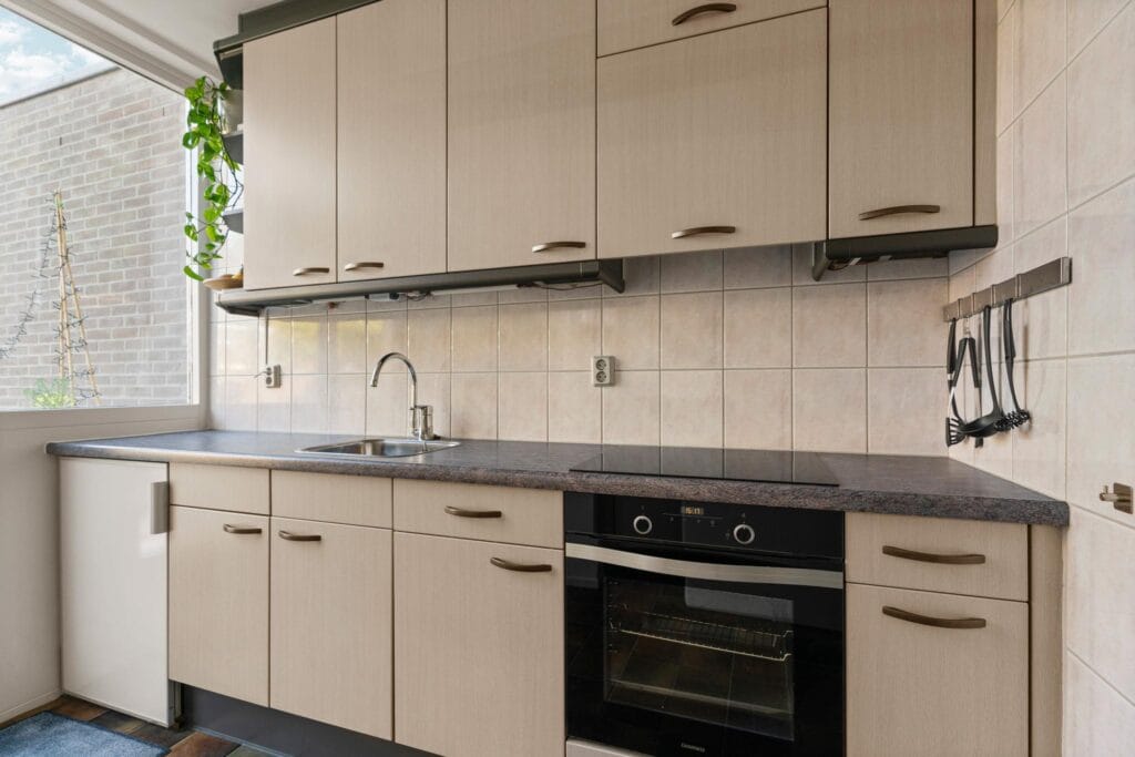 De keuken is functioneel ingericht en biedt de dagelijkse gemakken met een oven, vaatwasser, inductiekookplaat, koelkast en afzuigkap. Er is genoeg werkruimte voor het bereiden van maaltijden en voldoende opbergruimte voor al je keukengerei.