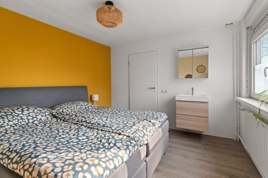 Op de eerste verdieping tref je drie slaapkamers aan, met formaten die variëren van ruim tot knus: 13m2, 12m2 en 7m2. De kleinste kamer is momenteel een praktische inloopkast. Ook is er een apart toilet, zodat niemand 's ochtends hoeft te wachten. De badkamer is voorzien van een ligbad, wastafel en heeft een raam voor frisse lucht en natuurlijk licht.
