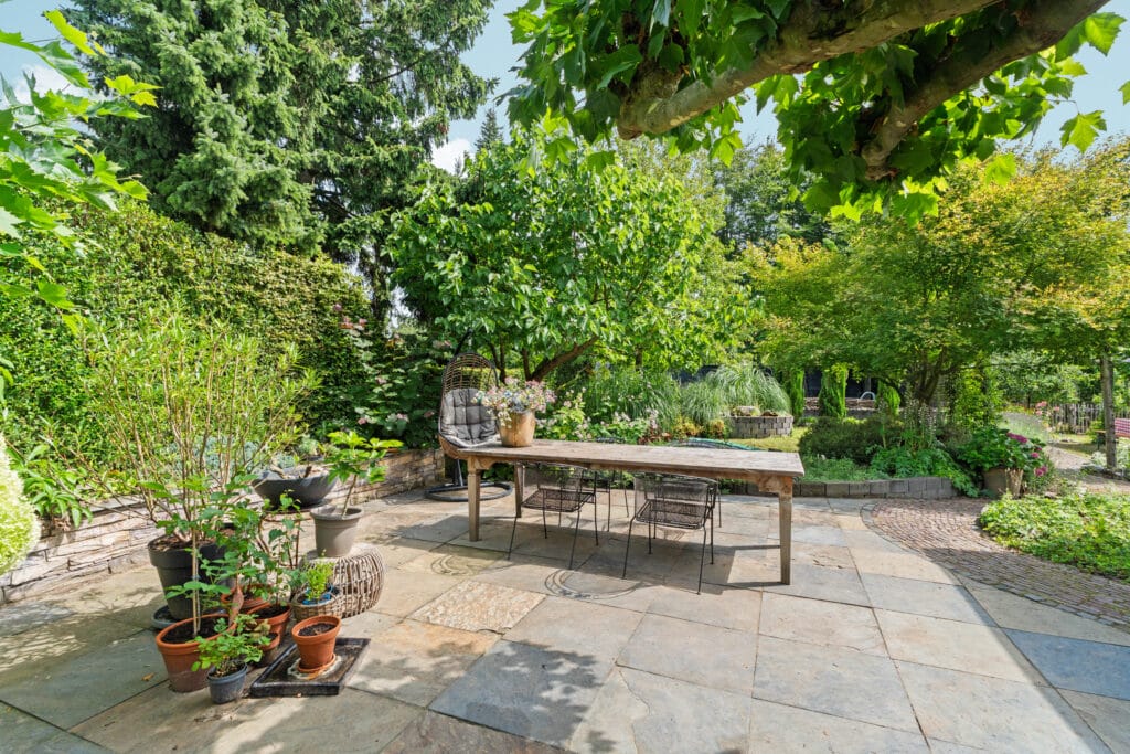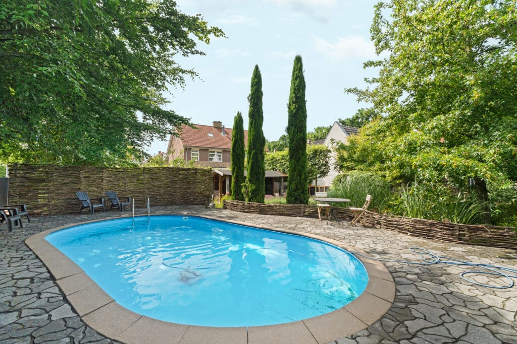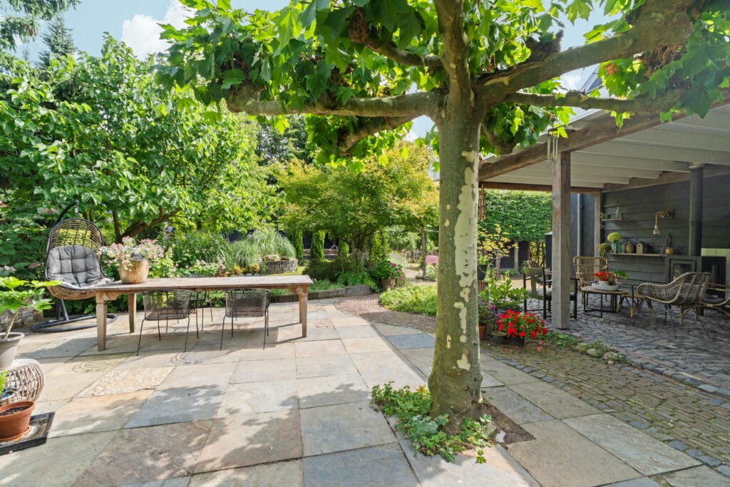 Bij deze woning hoort een absolute droomtuin. Het royale perceel van 980 m² biedt alles wat je je kunt wensen: rust, ruimte en privacy. De onder architectuur aangelegde tuin is weelderig groen en uitstekend verzorgd. Aan de achterkant ligt een verwarmd zwembad met een automatisch chloor- en PH-systeem, omgeven door Italiaanse cipressen die zorgen voor een mediterrane sfeer. Verspreid door de tuin vind je diverse terrassen, zodat je op elk moment van de dag kunt genieten van zon of schaduw. De royale veranda, voorzien van een houtkachel, biedt ruimte voor lange, gezellige avonden.
