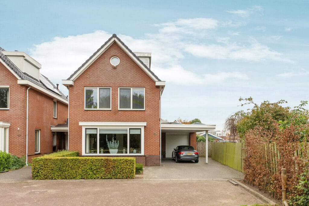 De voortuin is fraai aangelegd, met een ruime oprit en carport waar je droog kunt in- of uitstappen. Hier vind je bovendien een laadpaal voor je elektrische auto; hoe toekomstgericht wil je het hebben?