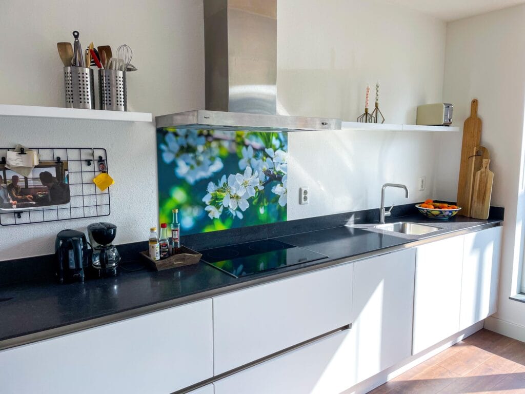 Bij binnenkomst tref je een lichte hal met een modern separaat toilet. Vervolgens stap je de ruime woonkamer (37 m² inclusief open keuken) binnen. De strakke, greeploze keuken is stijlvol afgewerkt en voorzien van alle gemakken, waaronder een splinternieuwe combimagnetron (2023). Je treft een praktische provisiekast onder de trap. De grote schuifpui aan de achterzijde brengt je naar de zonovergoten achtertuin.