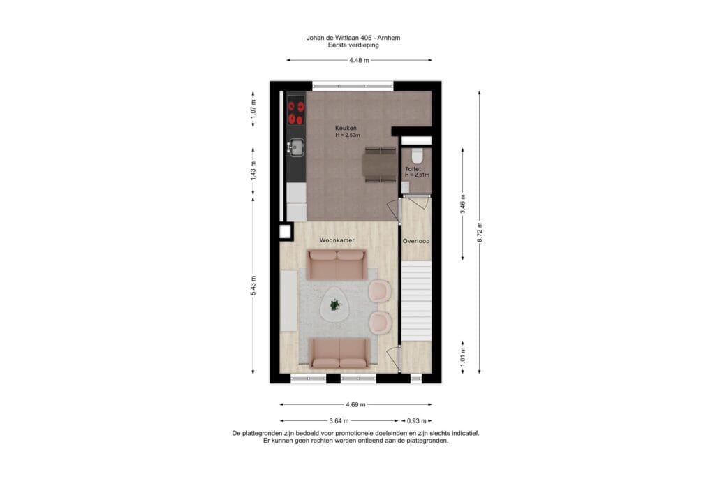 De Johan de Wittlaan is centraal gelegen in Arnhem, in een buurt die bekendstaat om zijn veelzijdigheid en levendigheid. Op loopafstand vind je diverse winkels, gezellige cafés en parken. Openbaar vervoer is uitstekend bereikbaar, en met de auto ben je binnen enkele minuten op de belangrijkste uitvalswegen. Perfect voor jonge professionals en gezinnen die op zoek zijn naar een dynamische maar toch rustige woonomgeving.