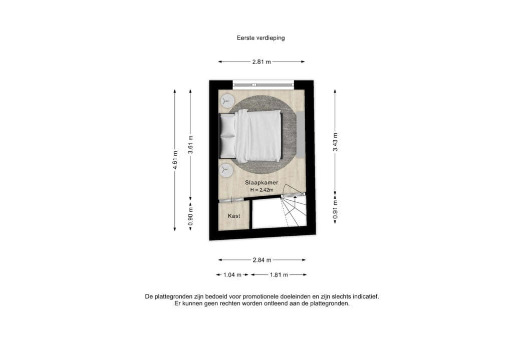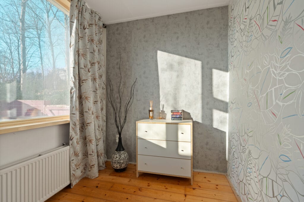 De eerste verdieping herbergt een tweede slaapkamer aan de achterzijde van de woning. Deze kamer leent zich perfect als thuiswerkplek, logeerkamer of hobbyruimte.
